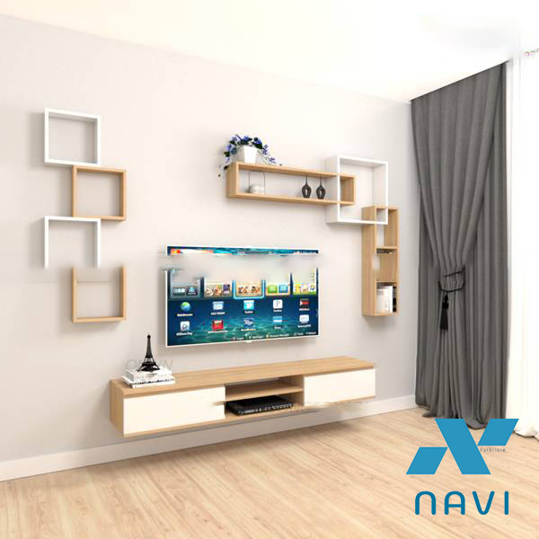 Thông tin chi tiết Bộ kệ tivi treo tường kèm hộc trang trí NV220: