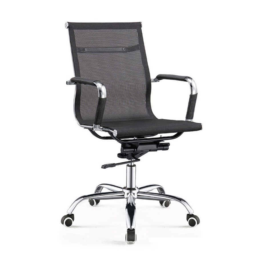 | Lưng ghế | Khung thép cường lực mạ Crom thiết kế trang trí đỡ phần lưng lưới màu đen, chống ẩm mốc tốt đem lại cảm giác thoải mái cho người dùng. | |